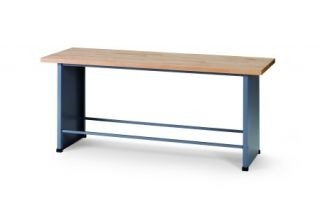 Basismodule 200 cm breed - Stalen zijwanden van 1,5 mm dik en voorzien van hamerslaggrijze poedercoating afwerking. - Massief beuken werkblad 4 cm dik. - Draagvermogen 400 kg.