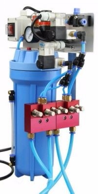 De dubbele sproeikop / nozzle DDL. is een koeldruppel sproeikop die wordt toegepast als intensieve koeling / smering van twee kanten van het gereedschap nodig is. Door het loskoppelen van sproeikoppen en verdelerunit is maar weinig inbouwruimte nodig. Ze zijn prima geschikt voor een vaste opbouw op boormachines of met magneetstandaards op een machine. De hoeveelheid lucht en koelmiddel is per sproeikop apart te regelen. De DDL sproeikop kan ook op onze MDM, MDE, MDE-P en MDE-PA systemen worden aangesloten.
