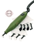 Lineair slijpend (niet roterend). Speciale motor met lange levensduur. Stabiel huis uit glasvezelversterkt POLYAMID. Met het apparaat worden 4 verschillende slijpvormen meegeleverd, vlak en schuin. Inclusief drie vellen zelfklevend schuurpapier in korrel 180, 240 en 400. Op elk vel zijn 5 x 4 vormen voorgestanst.