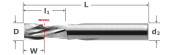 Gepolijste spaangroef met extreem scherpe snijkanten. Spaanvrije boven- en onderkanten, geen delaminatie (is loslaten van een gelamineerde laag). Zeer geschikt voor Aluminium, koper, kunststoffen en hout (triplex, multiplex enz).